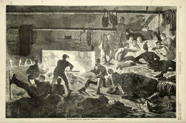 "Winter-Quarters in Camp - The Inside of a Hut. " I find no Homer Signature,