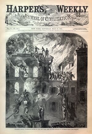 valiantly battling a blaze at Willard's Hotel. The illustration is rich
