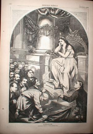 Southern leaders bowing in submission to Lady Liberty. The print is