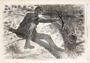 Union Sharpshooter perched in a tree, drawing a bead on the enemy.