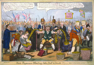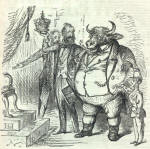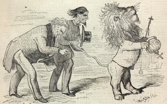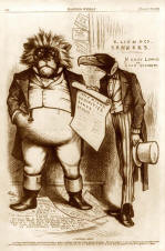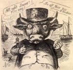 John BullJust as the United States has Uncle Sam as its National Symbol, Great Britain enjoys the National Symbol of John Bull. John Bull is typically a portly fellow sporting a top hat and wearing the Union Jack flag as a shirt. He often has a cane and overcoat. John Bull can first be found around 1712, a creation of John Arbuthnot. He was popularized through political cartoons, many of which appeared on the pages of Harper's Weekly. Harper's Weekly was important in popularizing the image of John Bull because of both its wide circulation, and its prolific use of wood cut illustrations. John Bull is sometimes pictured as a lion, or with a lion, analogous to the American Eagle sometime shown with Uncle Sam. In addition, he was sometimes pictured as a bull, as can be seen in some of the cartoons below. We have